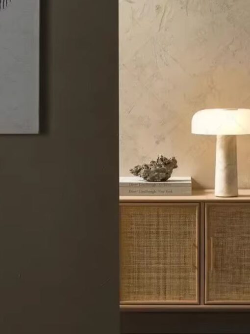 Bringen Sie mit dieser wunderschönen Tischlampe Pilz aus Travertin eine natürliche und elegante Note in Ihr Zuhause. Inspiriert von einem minimalistischen und raffinierten Design, vereint sie die Sanftheit eines Lampenschirms in Pilzform mit der Authentizität eines Fußes aus natürlichem Travertinstein. Mit ihren großzügigen Abmessungen von 39 x 32 cm verbreitet diese Lampe dank ihrer LED-Beleuchtung…