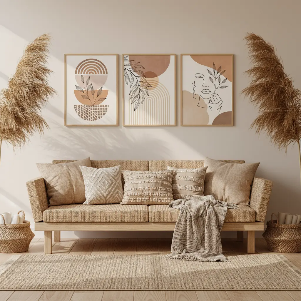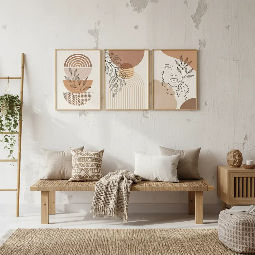 Ihr einfacher und harmonischer Stil passt perfekt zu einer natürlichen Bohème-Dekoration. Sie können sie für ein ausgewogenes Gesamtbild zusammen aufhängen oder mit anderen Boho-Postern kombinieren, um eine einzigartige und individuelle Wand zu gestalten.