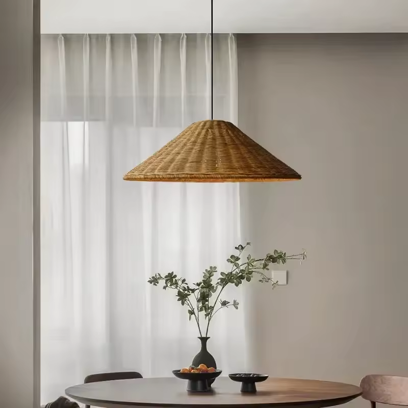 Veredeln Sie Ihr Zuhause mit dieser Hängeleuchte aus natürlichem Rattan, die perfekt ist, um Ihrer Dekoration Wärme und Authentizität zu verleihen. Ihr schlichtes, handgefertigtes Design verbreitet ein weiches, gedämpftes Licht, das ideal ist, um eine gemütliche und einladende Atmosphäre zu schaffen.