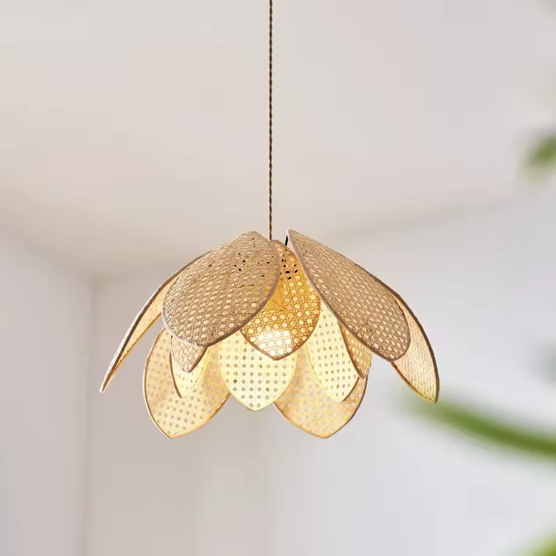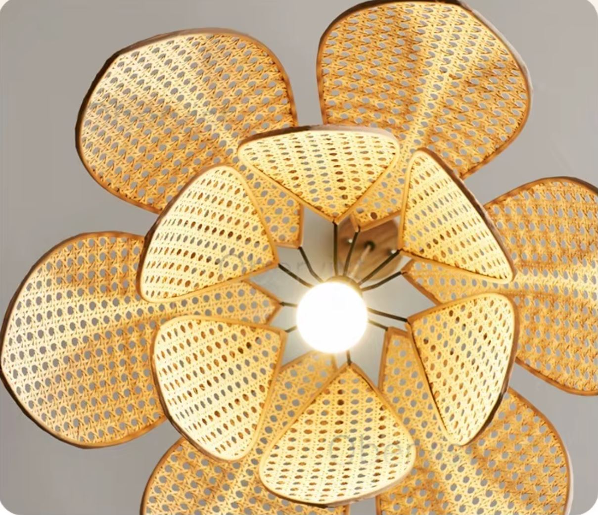 Schenken Sie Ihrem Zuhause eine blumige und warme Atmosphäre mit dieser Hängeleuchte Petal aus Rattangeflecht. Ihr elegantes, von Blütenblättern inspiriertes Design verbreitet ein sanftes, gedämpftes Licht, das sich ideal zur Beleuchtung eines Esszimmers, eines Wohnzimmers oder eines Schlafzimmers eignet.