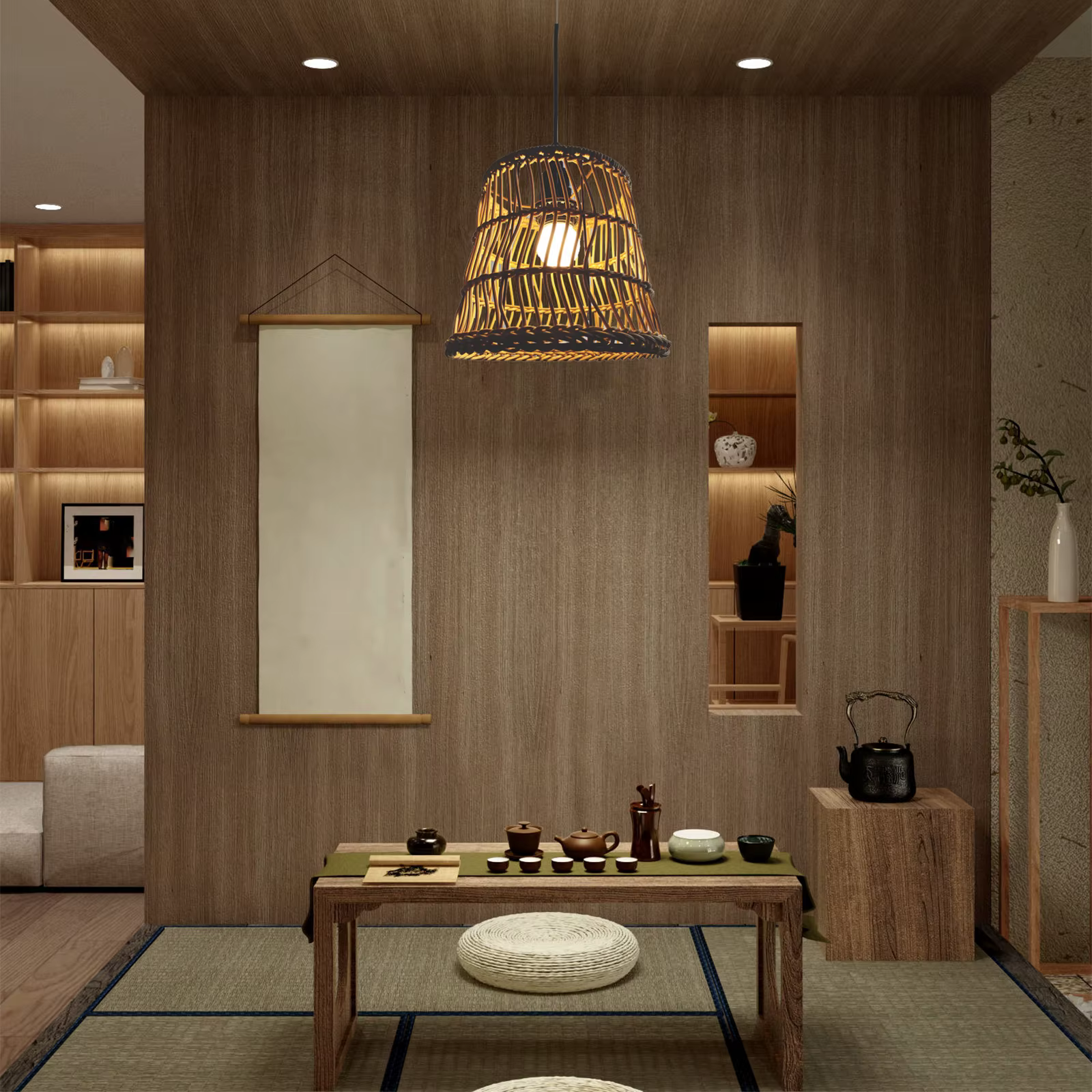 💡 Deko-Tipp: Kombinieren Sie mehrere Rattan-Lampenschirme in verschiedenen Farben für einen originellen und kontrastreichen Look.