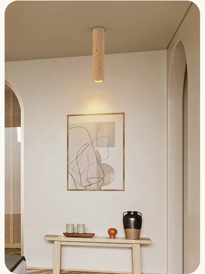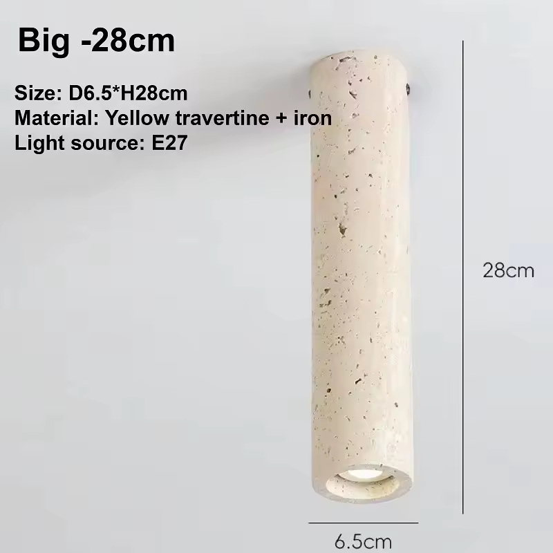 Zylindrische Deckenleuchte aus natürlichem Travertin (groß) D6.5 cm