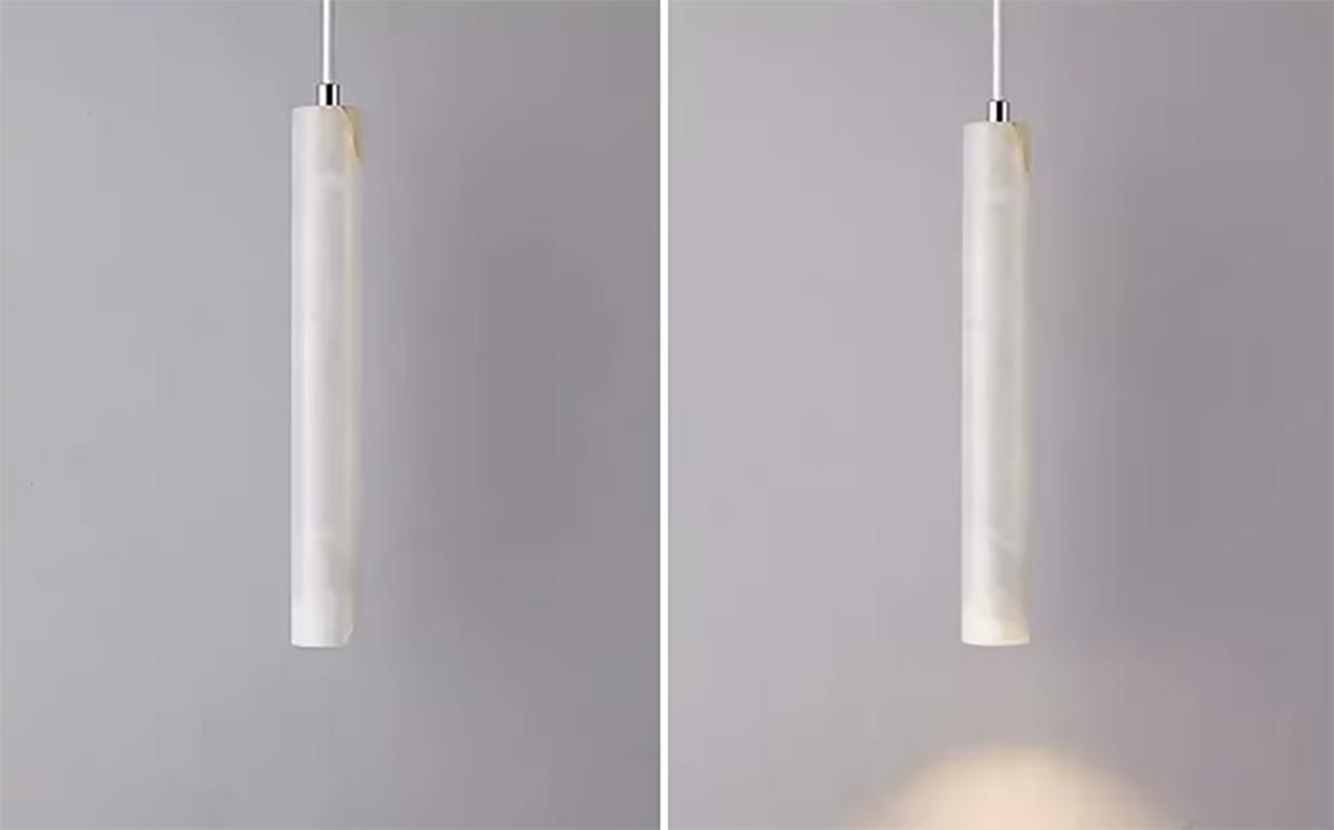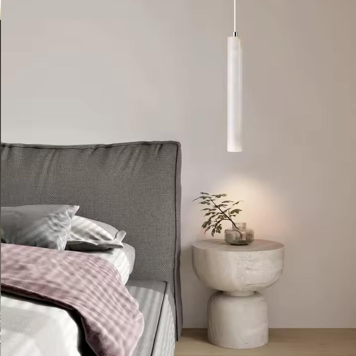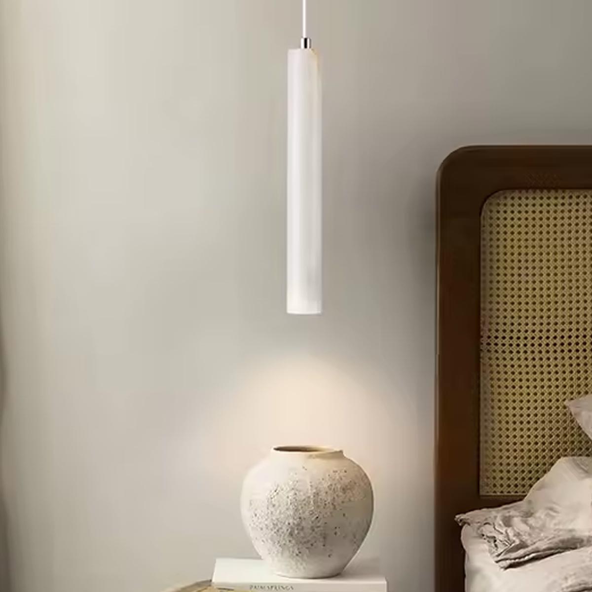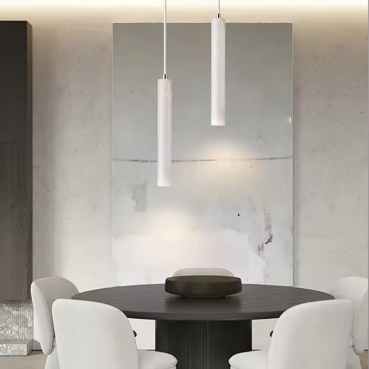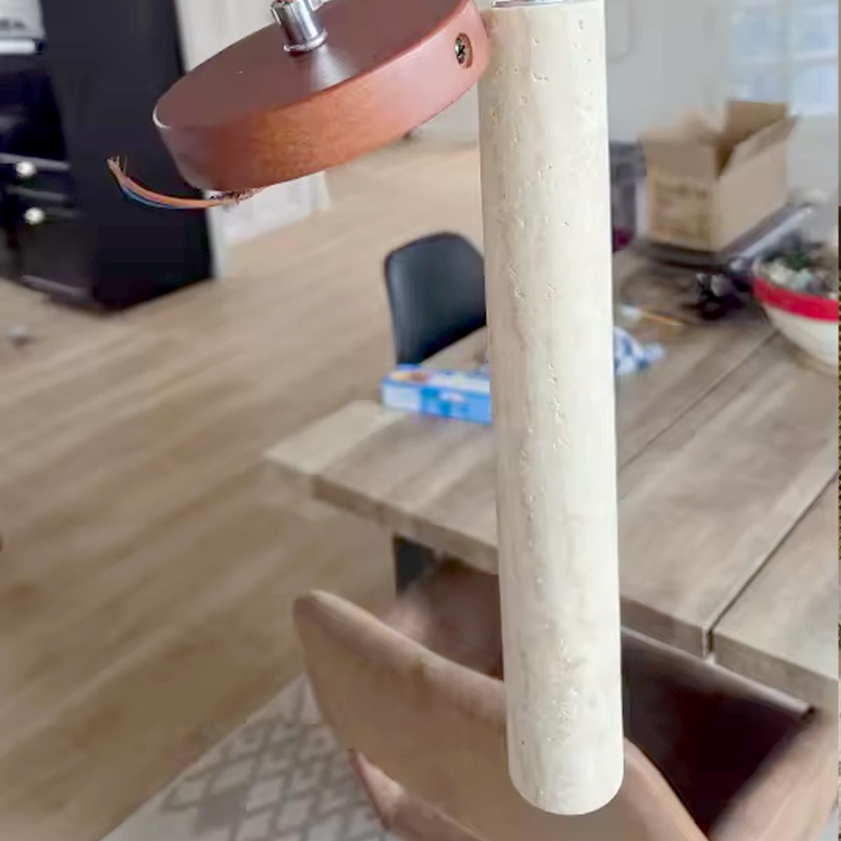 Zylindrische Pendelleuchte aus weißem Travertin D4 x H30 cm